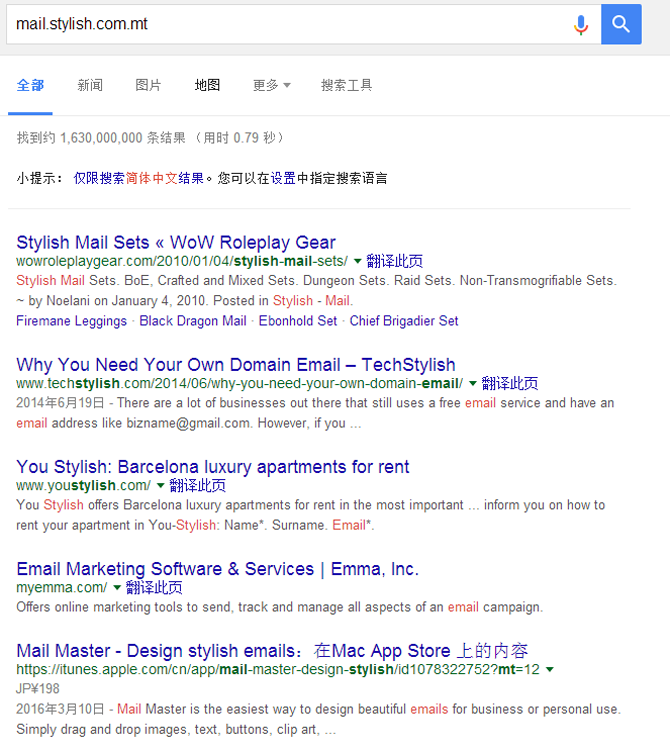 这个人我们可以从网址获得邮箱,但是有的网址里没有邮箱怎么办呢?这时候就需要结合谷歌找客户了,输入mail.stylish.com.mt,看看能发现什么。