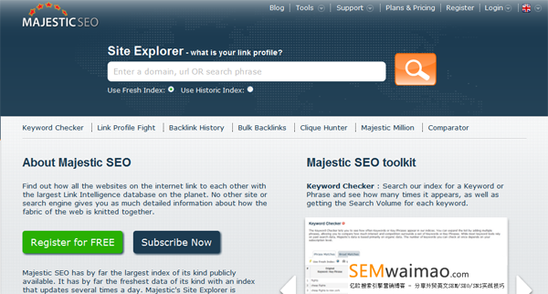Majestic SEO 是一款网站SEO浏览工具,它可以免费查询任何网站的外部链接情况,可以精确到某一条,你可以查询竞争对手网站的外链情况,并能通过分析了解对手网站的外链策略;同时你可以分析自己网站的外链,并进一步去完善,制定更有效的外链策略。但是,如果想通过Majestic SEO了解更多网站的信息,则需要注册高级用户,每个月£29.99的价格,还是比较便宜的。