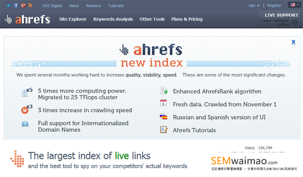 该工具不仅能查询到目标网站的外部链接情况,还能帮助你分析竞争对手网站外链,并给你提供更有效的链接方案,同时能够查询网站关键词排名,分析排名较低情况的原因,并提供更改意见。