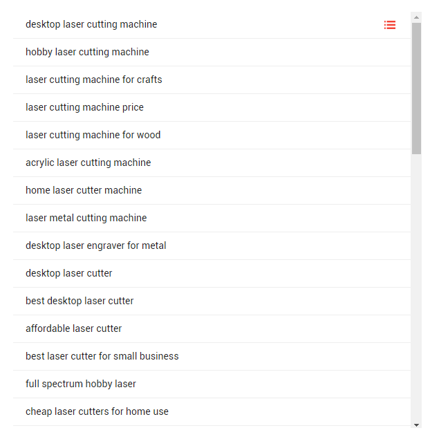 通过下图,我们可以看到用户的需求多种多样,有需求台式激光切割机的,有的则是用来切割金属、木材或是工艺品的,每个用户的针对性不一样,自然结果也比较复杂,而这些都是需要我们在页面进行处理的。