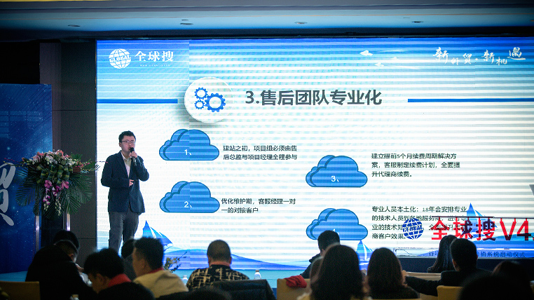 会上,谷道科技技术总监发布了全球搜系统新品“谷歌自动化人工智能营销系统”,全球搜渠道市场总监和渠道售后总监分别公布了2018年最新渠道政策以及2018年最新售后体系,并进行了全国优秀代理商的精彩分享及全球搜2018年新代理商现场授牌仪式。