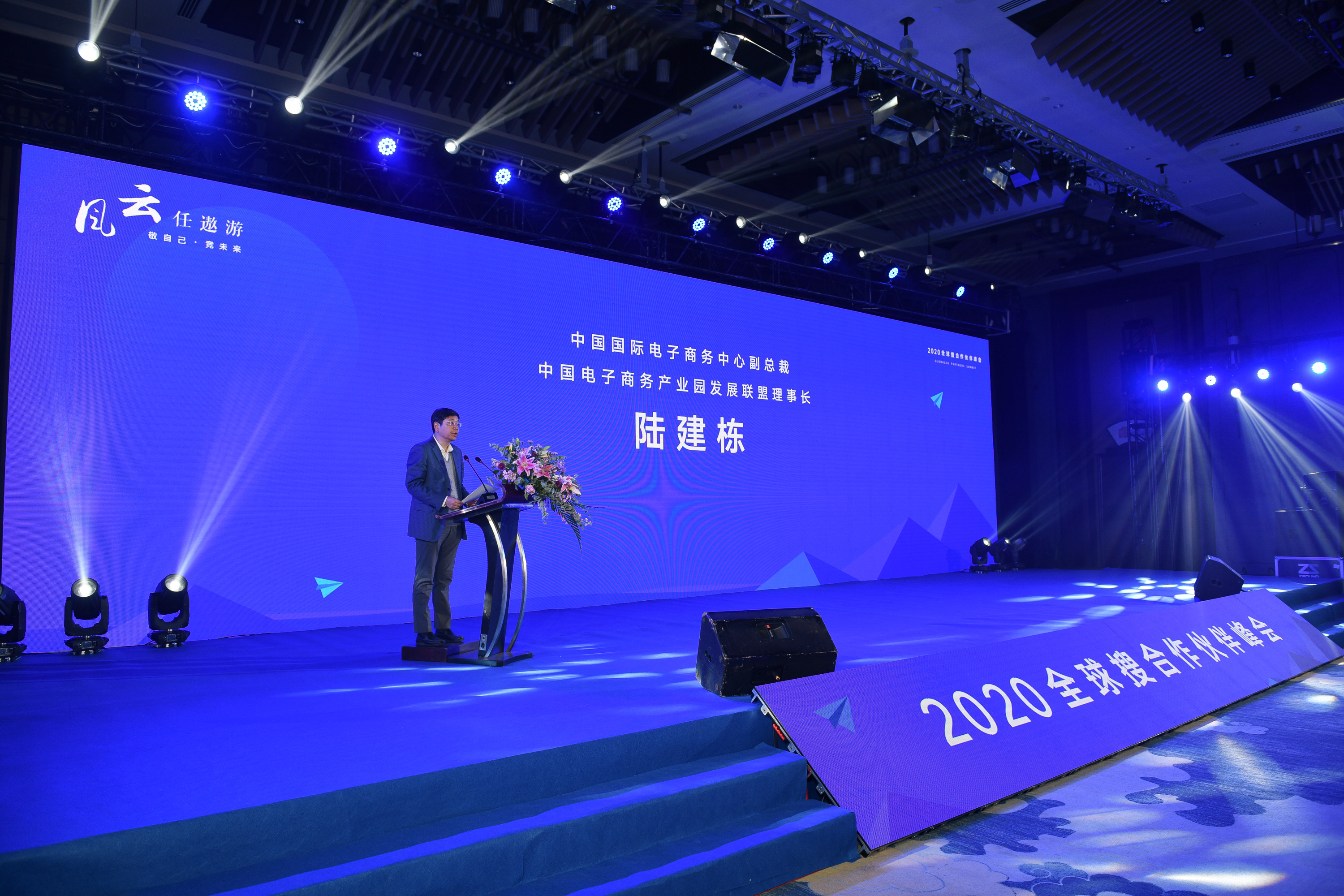 中国国际电子商务中心副总裁、中国电子商务产业园发展联盟理事长陆建栋为此次峰会致开幕词,对各位的嘉宾的莅临表示热烈的欢迎,对全球搜在2019年的行业贡献做出了肯定。