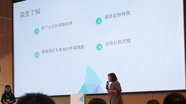 全球搜深圳分公司江倍女士作为Google优秀合作伙伴代表和数字营销专家,受邀上台分享了她在数字营销领域深厚的客户合作经验等更具针对性的深度内容。