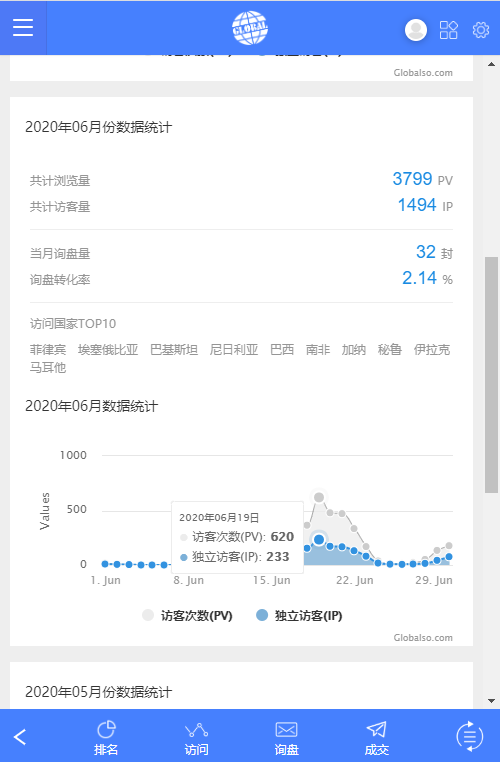 该企业与全球搜有着多年的合作,5月精准询盘达到126封,6月94封。