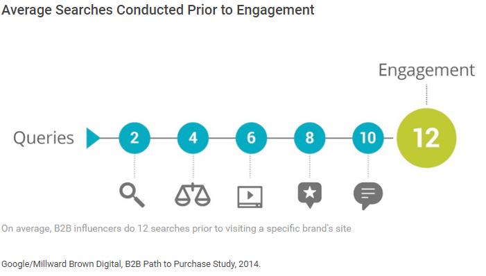 研究也表明,71%的B2B买家会通用Google搜索开始采购商品,而买家在进入特定品牌网站之前,平均会进行12次的搜索。